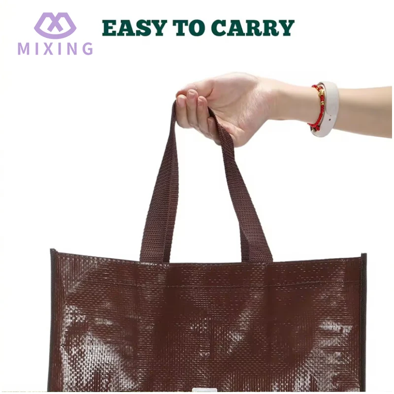 Mixingin China 40L PP Woven -kangaskassit on valmistettu paksusta kudotusta kankaasta, jolla on selkeä rakenne kosketettaessa, se ei ole ohutta, pehmeää ja helposti muotoutuvaa materiaalia, rakenne on tiiviisti järjestetty. Tavaroita täytettäessä se ei puhjeta helposti esineiden terävien kulmien vuoksi. Vaikka täytettäisiin useita kastikepurkkeja, useita paksuja kirjoja ja muita hieman painavia esineitä, pussin runko voi silti pysyä rapeana. Se ei tartu esineisiin pehmeästi ja löysällä tavalla.