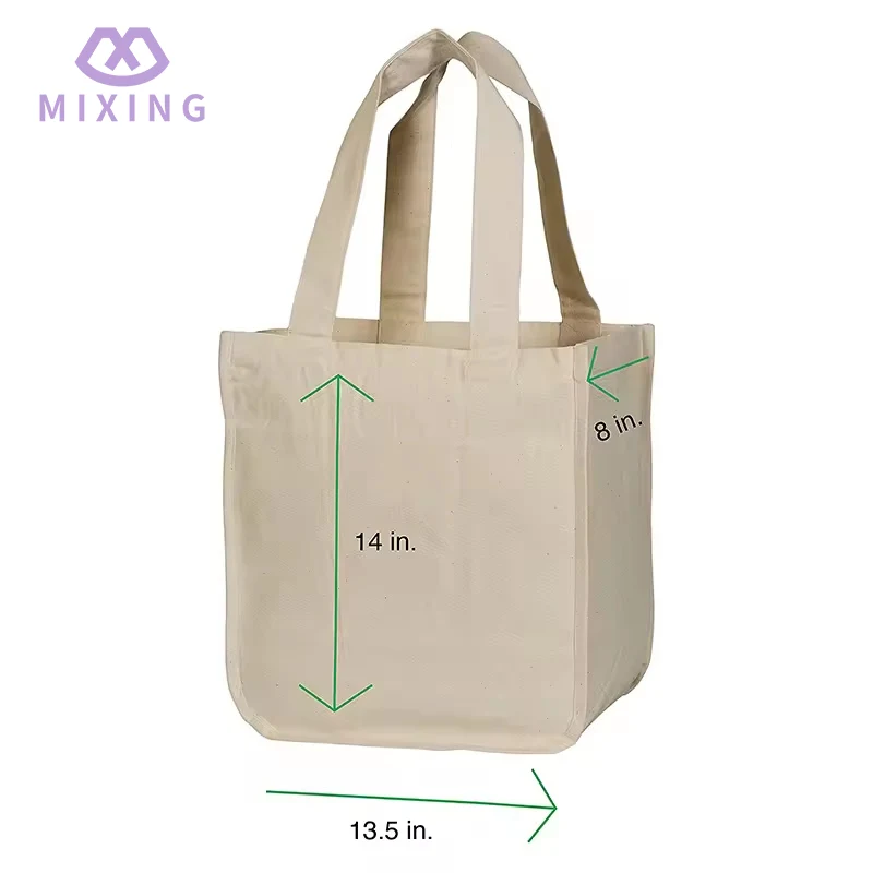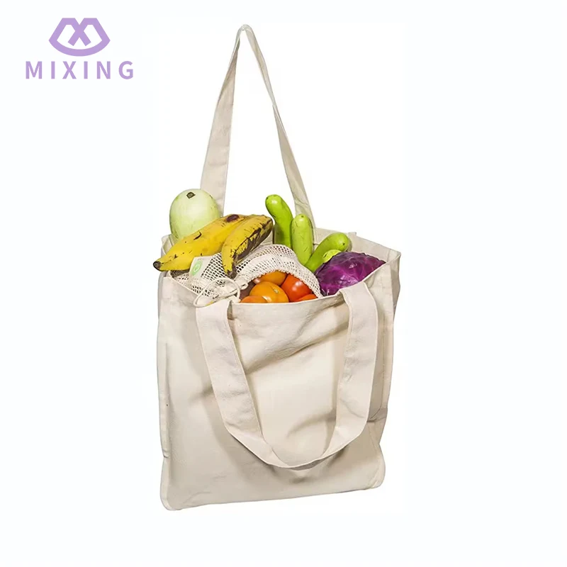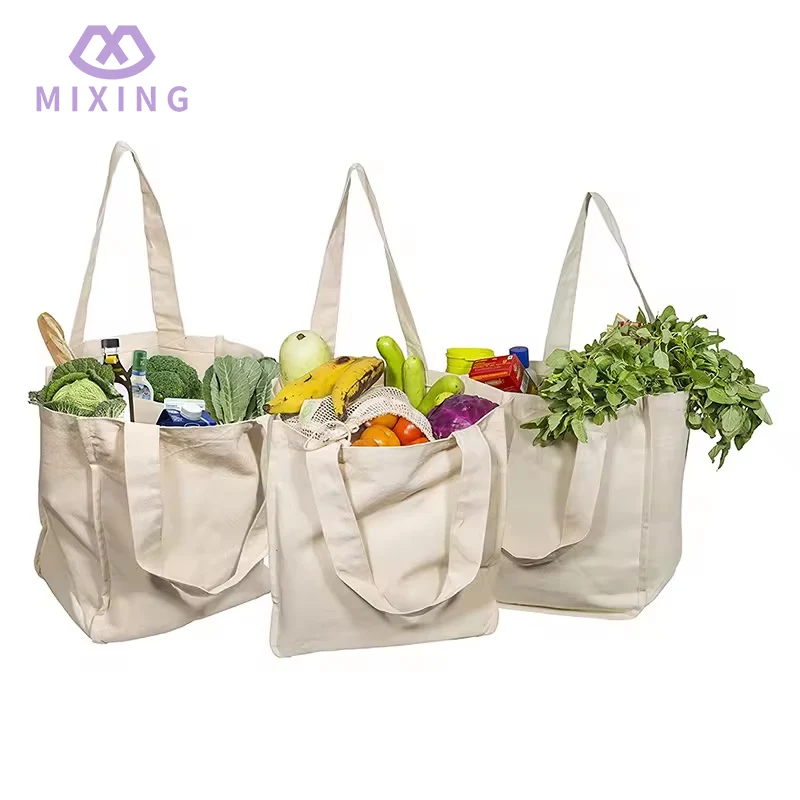 Mixingin Canvas Grocery Shopping -ostoskassit on valmistettu kankaasta, joka tuntuu paksulta ja kuvioituneelta, eivätkä ne ole niin pehmeitä ja murenevia kuin ohut kangas. Ne voivat säilyttää terävän muodon, kun ne on täytetty tavaroilla, eivätkä ne väännä sisällä olevia esineitä, vaikka ne täytetään raskaammilla esineillä, pussin runko voi pitää sen tiukasti.