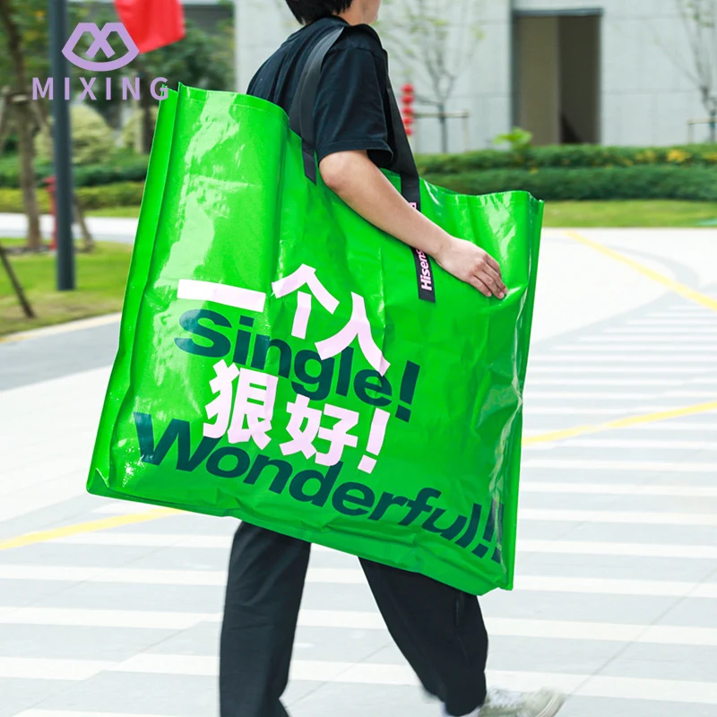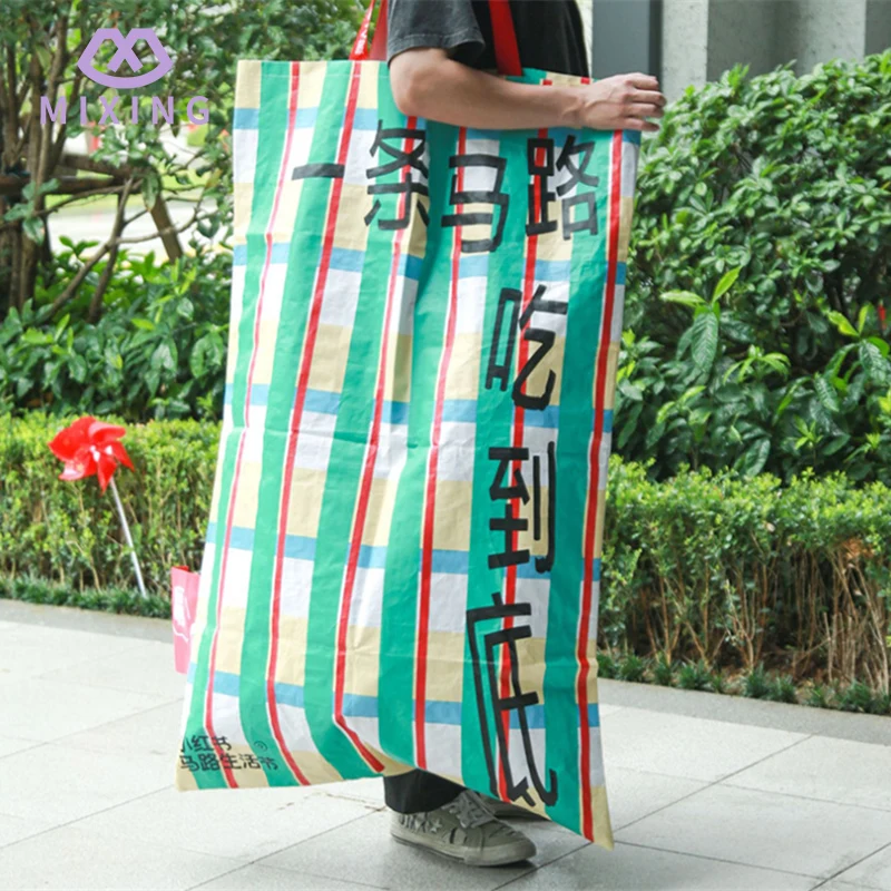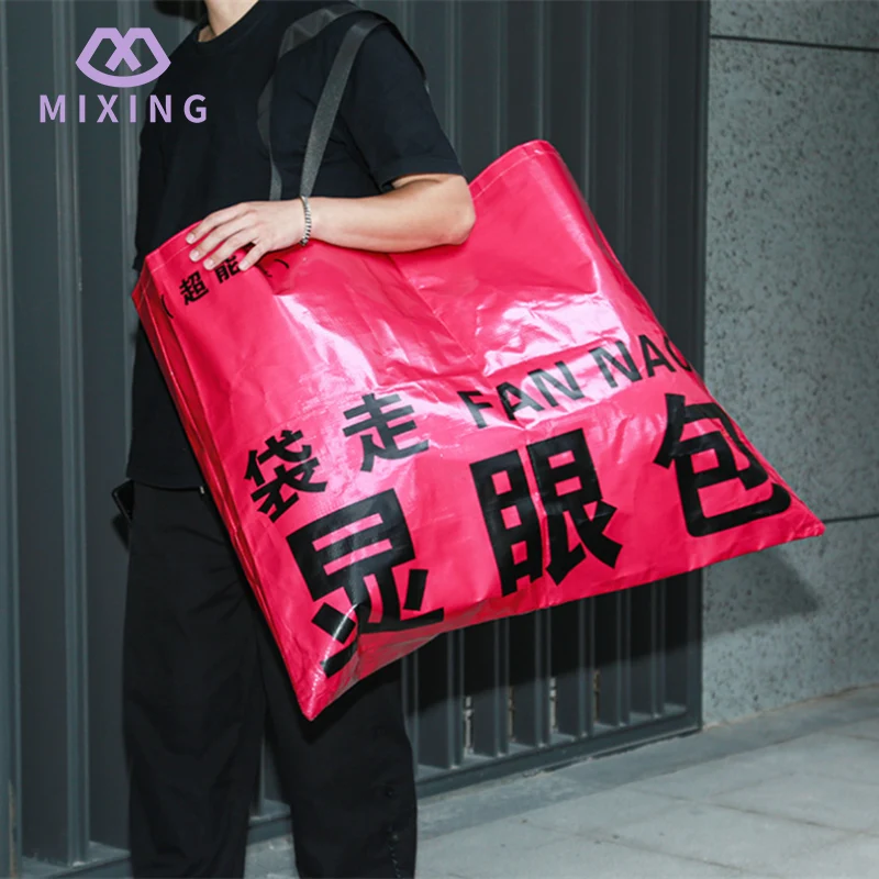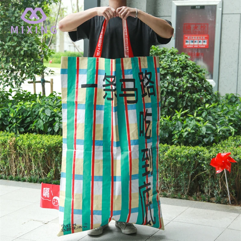 Tervetuloa ostamaan Mixingin räätälöity Giant PP Woven Bag. Tarvitsetpa sitten vuodevaatteita, vaatteita ja kattiloitasi ja pannujasi järjestelemään muuttaessasi tai varastoida välipaloja ja päivittäisiä tarpeita supermarketista ostoksia tehdessäsi tai lähteä viikonloppuisin telttailemaan kokoontaitettavien pöytien ja tuolien, telttojen ja aterioiden kanssa, Mixingin valmistama PP-kudottu laukku voidaan pakata yhdellä kertaa. Sitä ei tarvitse pakata useisiin pusseihin ja siirtää edestakaisin tavalliseen tapaan.