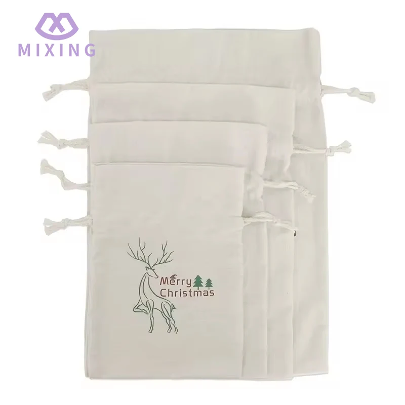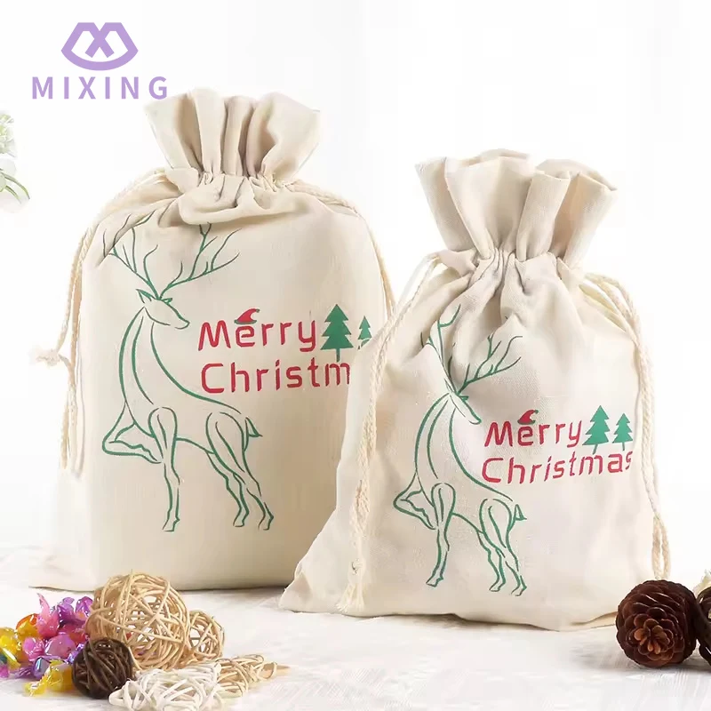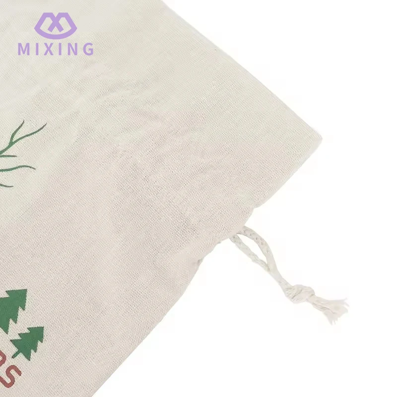 Mixingin valmistaman laadukkaan Large Cotton Christmas Drawstring Pussin kangas on läpikäynyt esikutistumiskäsittelyn. Koskettaessa voit tuntea puuvillakankaalle ominaisen paksun rakenteen ja hienon koostumuksen. Se ei ole altis muodonmuutoksille kuten ohuelle puuvillakankaalle, eikä se ole jäykkä materiaalin kovuuden vuoksi. Se voi luonnollisesti säilyttää säännöllisen muodon tavaroiden lataamisen jälkeen. Laukun runkoon on painettu täyteläisiä jouluaiheisia kuvioita, jotka ovat väriltään kirkkaita ja sulautuvat hyvin kankaaseen välttäen pinnalla kelluvien kuvioiden halpatuntuman.