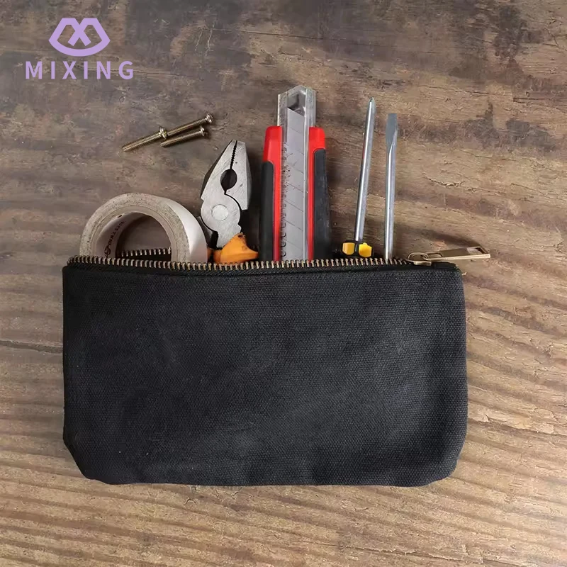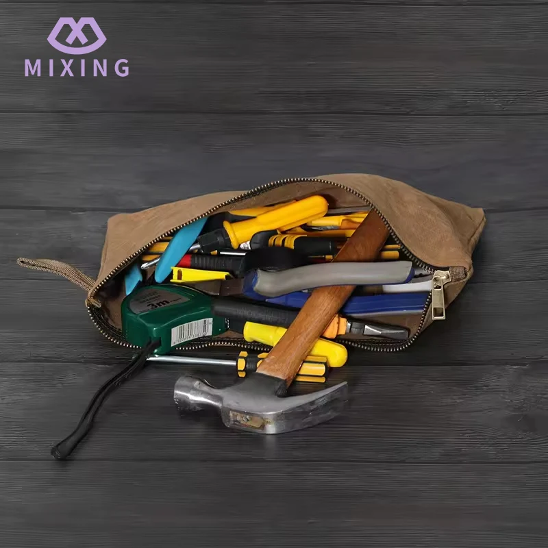 Mixingin China Waxed Canvas -työkalupussia käytetään pääasiassa arkielämässä käytettyjen pienten työkalujen pitämiseen, pussin rungossa on vetoketjullinen avaus- ja sulkemismuoto. Vetoketju on kestävää metallityyppiä, vedettäessä ja suljettaessa se on erittäin sileä eikä jää kiinni työkalun lievästä törmäyksestä, kun vetoketju on kiinni, pussin aukko voidaan sulkea suhteellisen tiukasti. Älä huolehdi työkalujen tärisystä ja putoamisesta sisään.